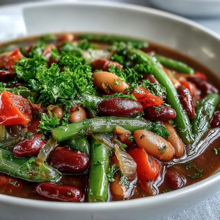 - Drei Arten von Bohnen: Die Kombination aus Kidneybohnen, weißen Bohnen und grünen Bohnen bildet das Herzstück dieser Suppe und sorgt für verschiedene Texturen und einen ausgewogenen Proteingehalt.