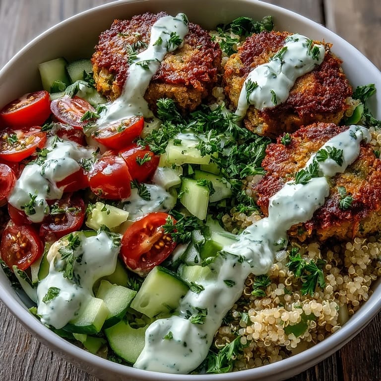 Merken One afternoon, I was standing in my kitchen staring at a half-empty pantry when my roommate mentioned craving something healthy but satisfying. I pulled out a can of chickpeas, remembered a falafel I'd had at a market in Tel Aviv years ago, and thought: what if I baked them instead of frying? That evening, this bowl came together—crispy falafel, fluffy quinoa, and a tahini sauce so good my roommate asked for the recipe before finishing her first bite.