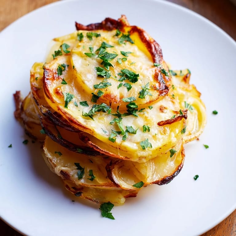 Merken Das erste Mal, als ich französische Zwiebelsuppe auf einem Flohmarkt in Lyon probiert habe, war ich überrascht, wie eine so einfache Suppe so tiefe, komplexe Aromen haben konnte. Jahre später kam mir die Idee, diese beruhigende Kombination aus karamellisierten Zwiebeln und würzigem Käse auf Kartoffeln zu übertragen, und plötzlich hatte ich ein Gericht, das sich anfühlte wie Nostalgie in Kartoffelform. Diese Version ist weniger zeitaufwändig als die klassische Suppe, aber genauso befriedigend, besonders wenn die Käseschicht zu brodeln beginnt.