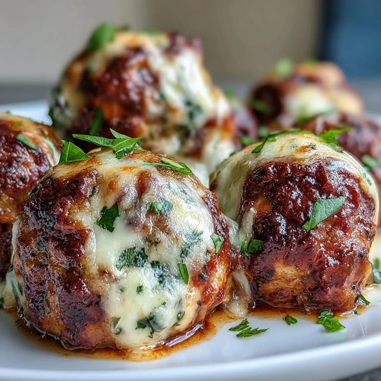 Merken My neighbor stopped by one Tuesday evening with a craving she couldn't quite name, and I realized halfway through our conversation that she was describing chicken parm cravings mixed with late-night sandwich desires. That's when it hit me: why not bake it all together into these golden, spicy meatballs swimming in marinara and melted cheese? The first batch came out of the oven bubbling and fierce, and she ate three before I could even plate them properly.
