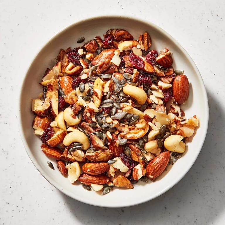 Merken Eine köstliche, knusprige Nussmischung mit gerösteten Nüssen, Samen und einem Hauch getrockneter Früchte – perfekt zum Teilen oder als proteinreicher Snack.