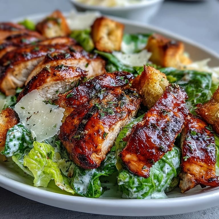 Merken Es war ein Samstagmorgen im Juli, als mein Nachbar über den Zaun lehnte und fragte, ob ich wusste, wie man Hähnchen wirklich gut grillt. Sein Blick sagte mir, dass er mehr wollte als nur das übliche trockene Fleisch auf Salat. Das brachte mich dazu, diese Caesar-Salatversion zu erfinden, bei der das gegrillte Hähnchen nicht einfach eine Zutat ist, sondern der Stern der Show. Mit griechischem Joghurt statt schwerer Mayonnaise und selbstgemachten Croutons aus Sauerteig wurde es schnell zu unserem gemeinsamen Lieblingsgericht für warme Abende.