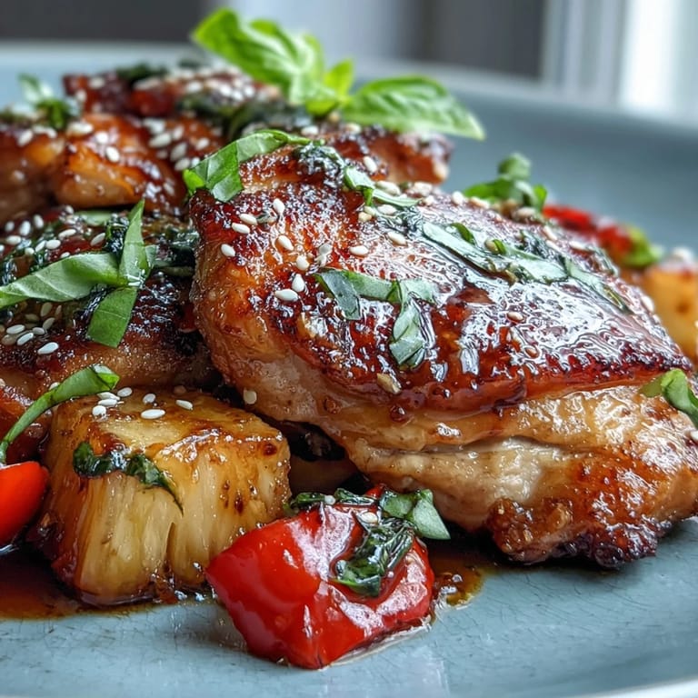 Merken Years ago, I stumbled upon chicken thighs at a farmers market and had no idea what to do with them beyond roasting. That same week, a friend raved about a sticky honey garlic dish she'd eaten at a tiny fusion restaurant downtown, describing it with such vivid enthusiasm that I became obsessed with recreating it. When I finally pieced together my own version in my kitchen—layering that glossy sauce over golden chicken and caramelized pineapple—something clicked. The way the honey caramelized in the pan, how the tropical sweetness played against the garlicky depth, how it all came together in under an hour without dirtying five pans. This became the recipe I make when I want to impress people without the stress.
