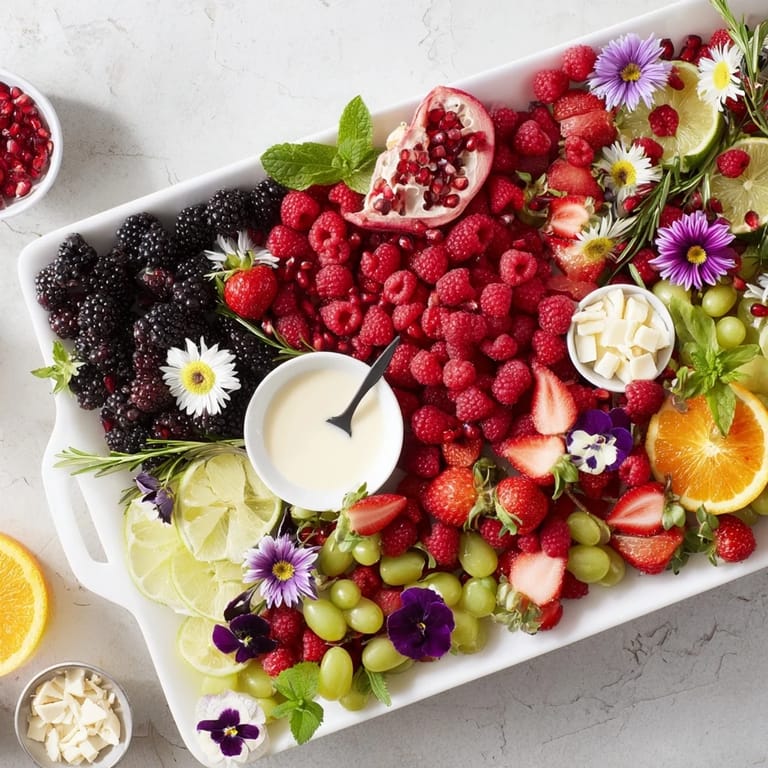 • Frische Früchte: 1 Tasse frische Himbeeren, 1 Tasse frische Brombeeren, 1 Tasse frische Erdbeeren, entstielt und halbiert, 1 Tasse Granatapfelkerne, 2 Zitronen, in dünne Scheiben geschnitten, 2 Limetten, in dünne Scheiben geschnitten, 1 Orange, in halbe Monde geschnitten, 1 Tasse kernlose grüne Trauben, halbiert