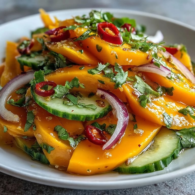 Ich habe gelernt, dass geröstete Erdnüsse oder Cashews kurz vor dem Servieren den Salat auf ein neues Level heben. Der nussige Crunch kontrastiert wunderbar mit der saftigen Mango und gibt jedem Bissen mehr Textur. Röste die Nüsse kurz in einer trockenen Pfanne, bis sie duften, dann hacke sie grob und streue sie oben drüber. Es ist eine Kleinigkeit, die große Wirkung zeigt.