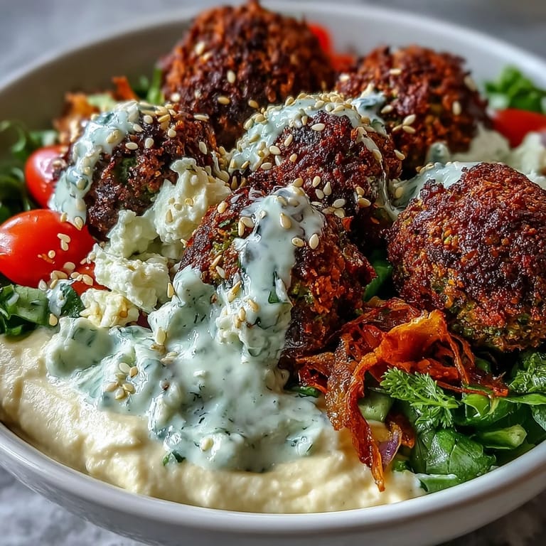 Merken Ein Freund aß diese Schüssel während eines denkwürdigen Herbstabends auf meinem Balkon und fragte später, ob dies wirklich nur gefrorene Falafel waren—das war der Moment, als mir klar wurde, dass manchmal die beste Kochkunst gar keine Kochkunst ist, sondern einfach das Zusammenbringen guter Zutaten und Respekt vor jedem einzelnen. Es war das erste Mal, dass ich sah, wie etwas so einfaches Menschen wirklich zusammenbrachte.