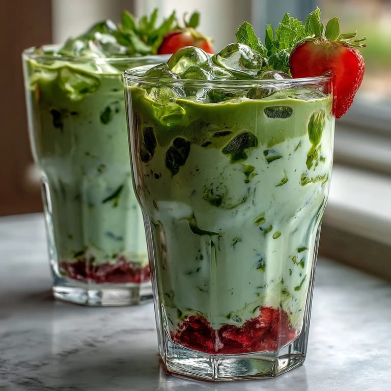 Dieser erfrischende Drink verbindet süße Erdbeerpüree mit einer cremigen Milchschicht und geschmackvollem Matcha grünem Tee. Ohne Erhitzen sorgen die frischen Zutaten für ein belebendes Geschmackserlebnis, das optisch durch die klaren Schichten besticht. Perfekt für heiße Tage ist er schnell zubereitet und kann mit verschiedenen Milchsorten angepasst werden, um individuellen Vorlieben gerecht zu werden. Ein Hauch von Vanille und optionale Honigsüße runden das Getränk ab. Das sorgfältige Schichten bewahrt die Farben und frische Aromen in jedem Schluck.