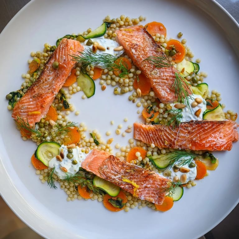 Die Unendlichkeitsschleife ist kein reines Gimmick. Wenn du um die Acht herum isst, erleben deine Geschmacksknospen eine natürliche Progression: Erst der Couscous als Basis, dann die Frische des Gemüses, dann der reiche Lachs, alles gewürzt durch Kapern und gekrönt durch Dill. Es ist praktisch, wie Geschmacksnoten eine Symphonie bilden, nicht durch Zufall, sondern durch Zusammensetzen.