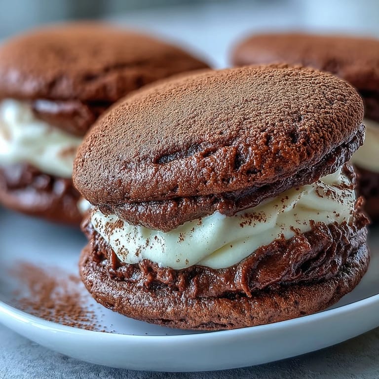 Ich erinnere mich noch gut daran, wie ich diese Whoopie Pies zum Geburtstag meiner Schwester mitbrachte. Sie liebt Tiramisu über alles, hatte aber keine Dessertgabeln dabei. Also reichte ich ihr einfach eines dieser gefüllten Keksschiffchen, bestäubt mit Kakao. Ihr Gesicht leuchtete auf, als sie hineinbiss und die cremige Kaffeefüllung herausquoll. Seitdem fragt sie jedes Mal nach diesem Rezept, wenn wir uns sehen.